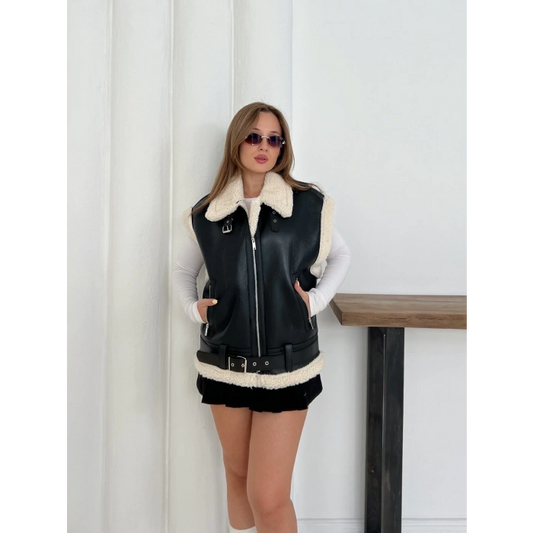 Peluş Detaylı Statement Yelek Siyah Kahve
