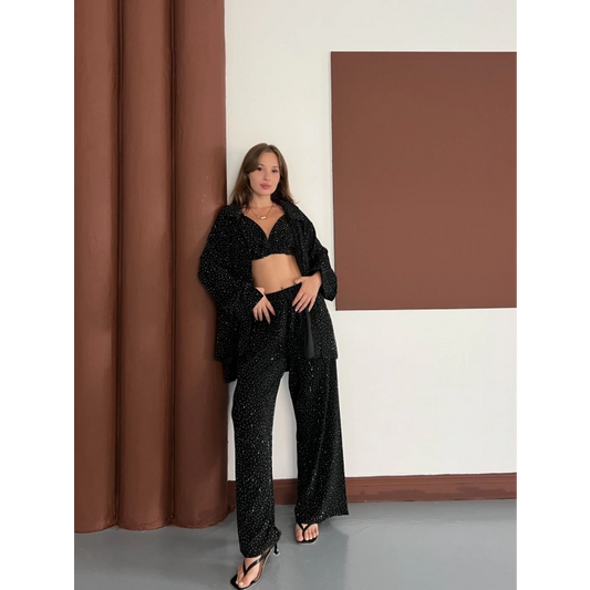 Siyah Kare Yaka İspanyol Paça İkili Takım