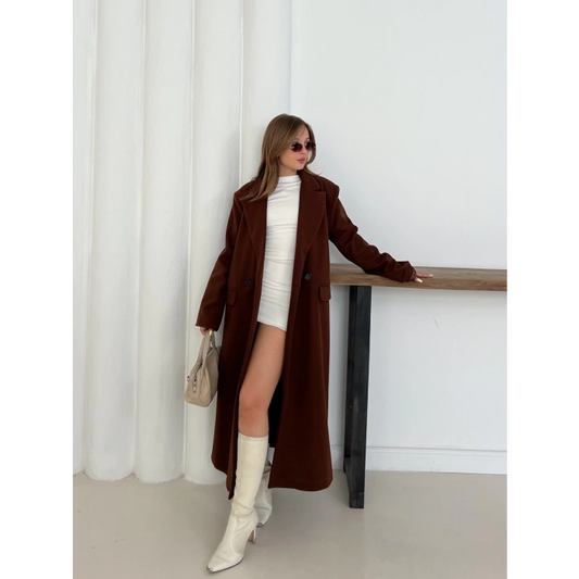 Uzun Boy Kuşak Detaylı Kaban Kahverengi