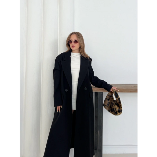 Tek Düğme Detaylı Kaşe Kaban Siyah