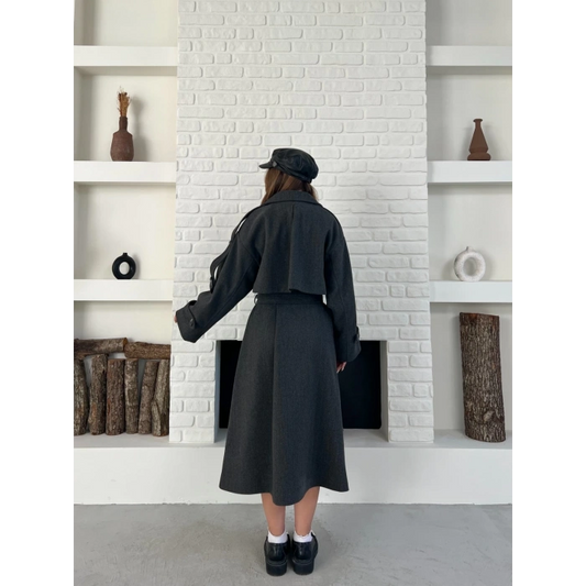 Uzun Boy Kuşak Detaylı Kaban Antrasit