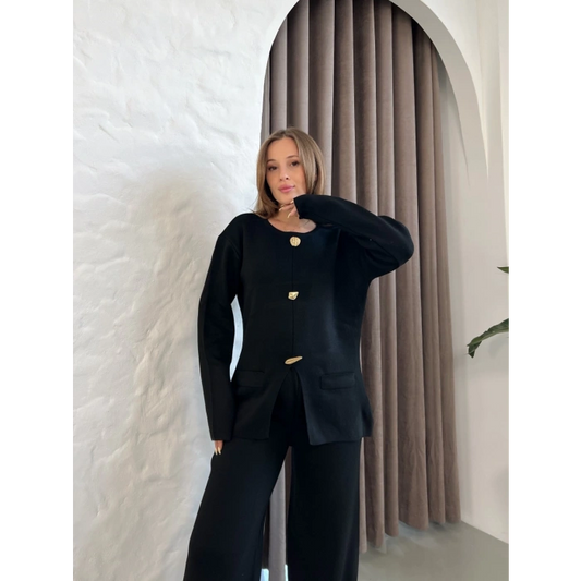 3 AL 2 ÖDEAksesuar Detaylı Triko Takım Siyah