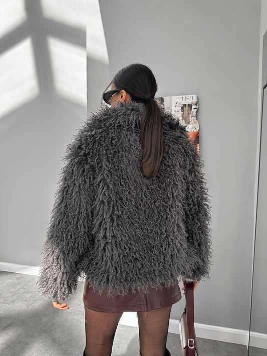 Antrasit Yün Karışımlı Sleeve Pocket Kaban
