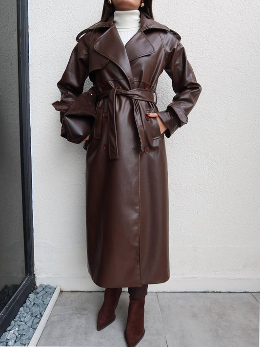 3 AL 2 ÖDEApolet Detay Kuşaklı Deri Trench Kahve