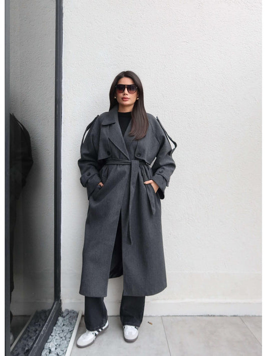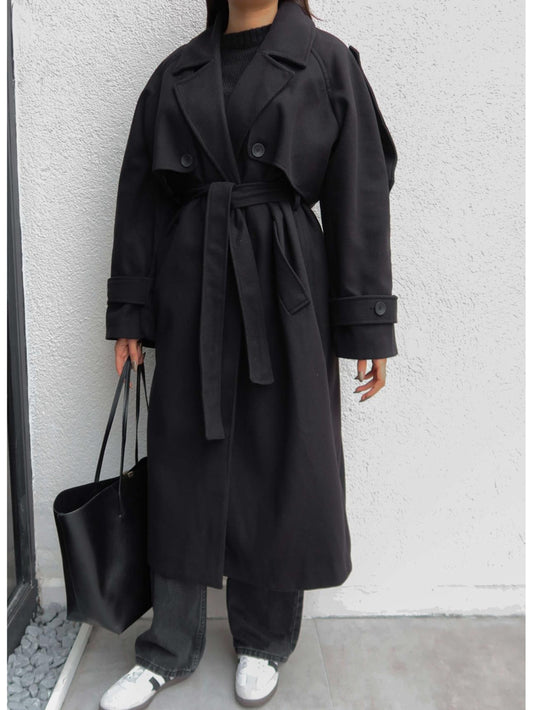 3 AL 2 ÖDEApolet Detay Kuşaklı Kısa Trench Siyah