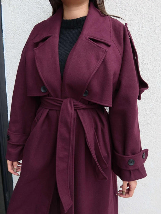 3 AL 2 ÖDEApolet Detay Kuşaklı Kısa Trench Bordo