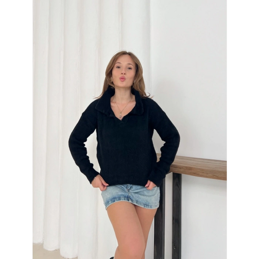 3 AL 2 ÖDEYumoş Kumaş Yakalı Kazak Siyah