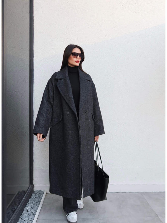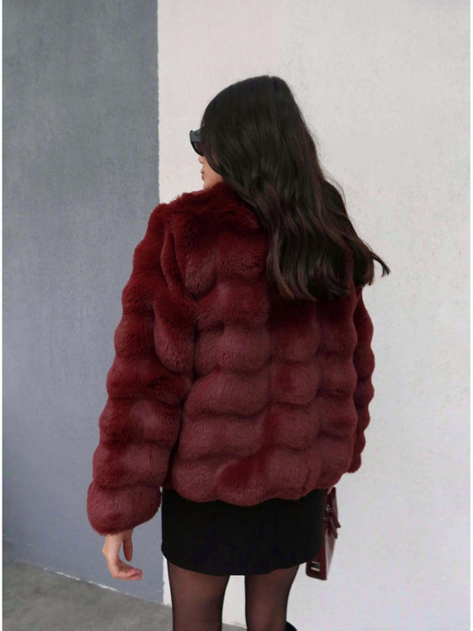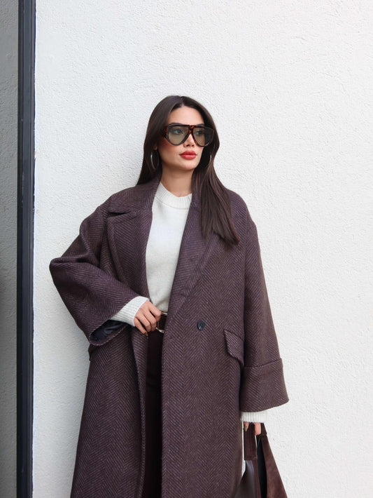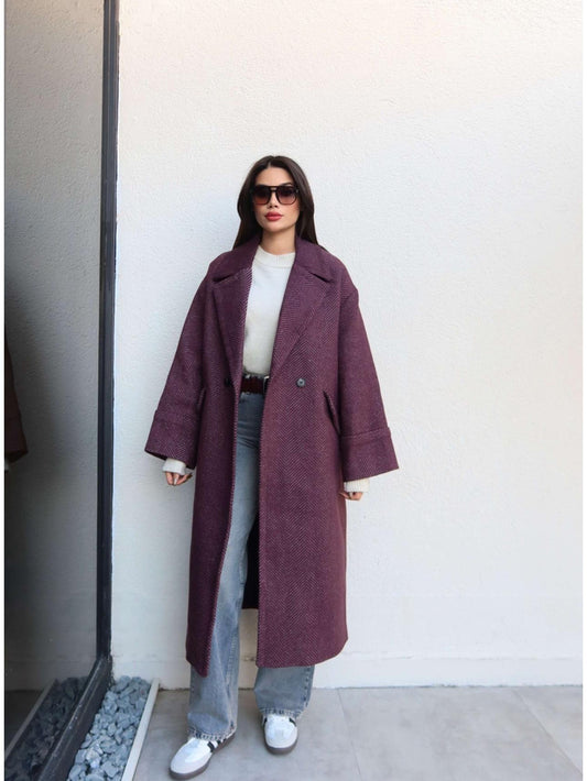 Bordo Yün Karışımlı Casual Kaşe Kaban