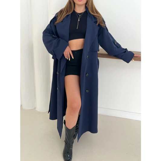 Düğme Detaylı Oversize Trençkot Lacivert