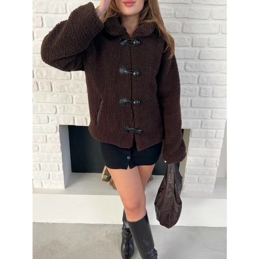 Düğme Detay Teddy Oversize Ceket Kahverengi