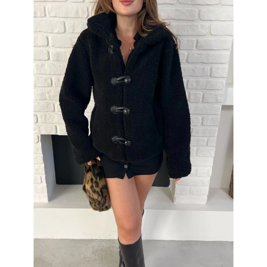 Düğme Detay Teddy Oversize Ceket Siyah