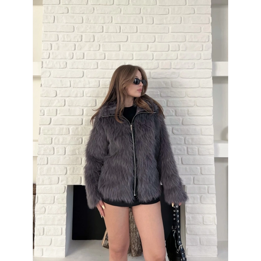 Fermuarlı Kaşe Kısa Ceket Antrasit