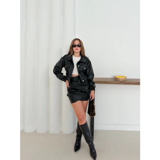3 AL 2 ÖDERugan Kruvaze Deri Ceket Siyah