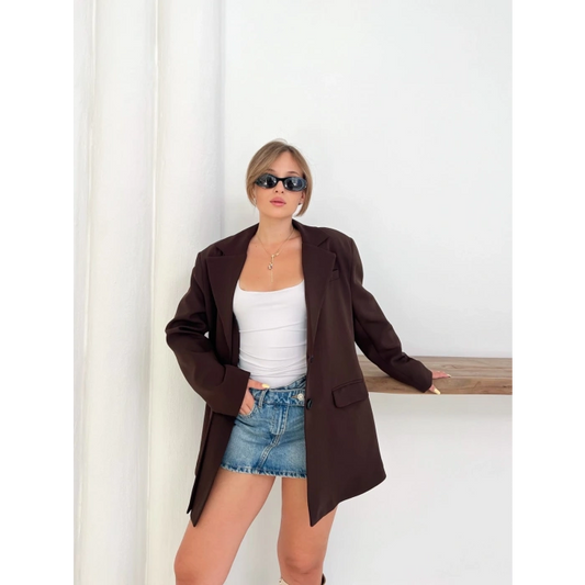 Düğme Detay Kruvaze Yaka Blazer Ceket Kahverengi