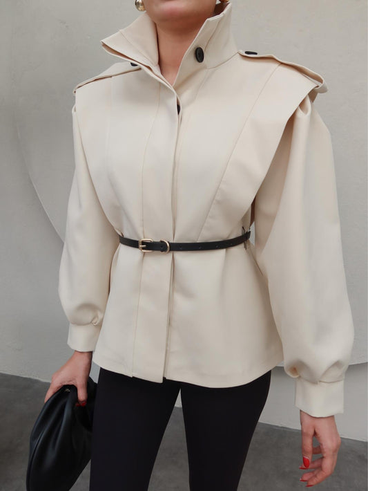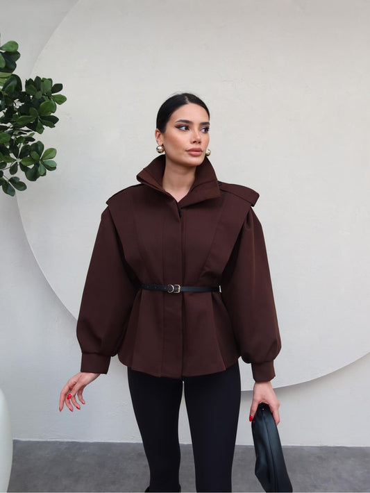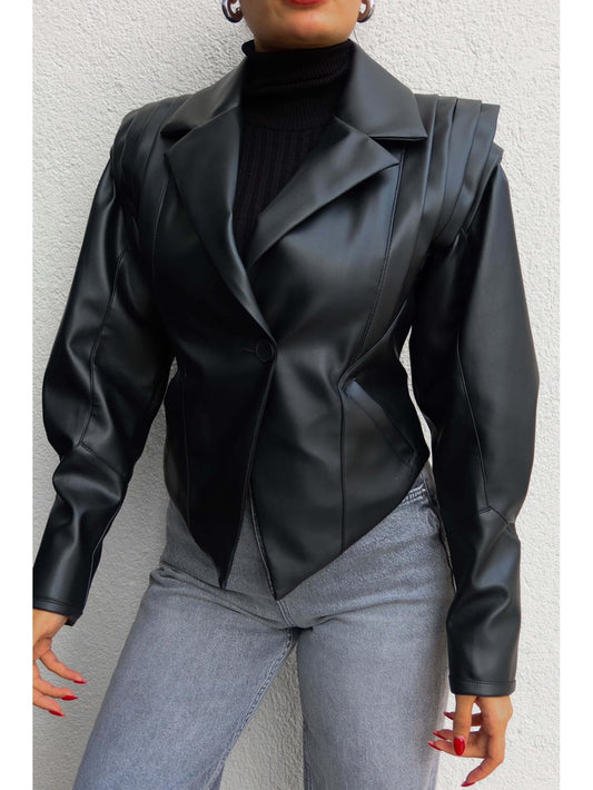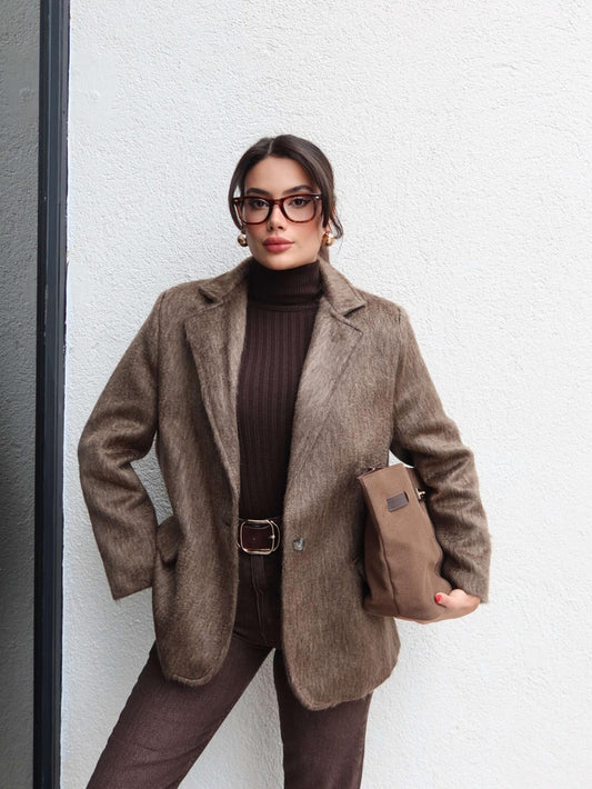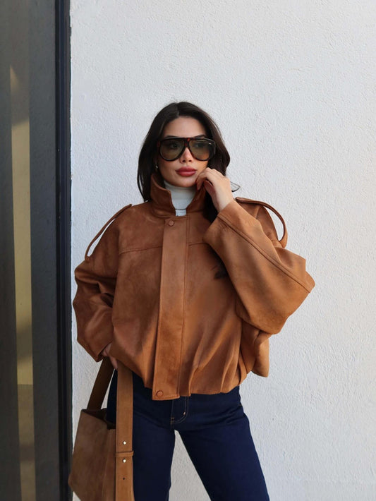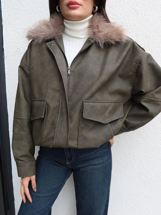 Süet Yaka Çıtçıtlı Mumlu Ceket