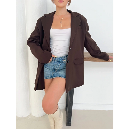 Düğme Detay Kruvaze Yaka Blazer Ceket Kahverengi