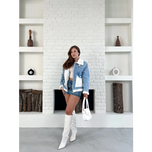 Peluş Detaylı Kot Ceket