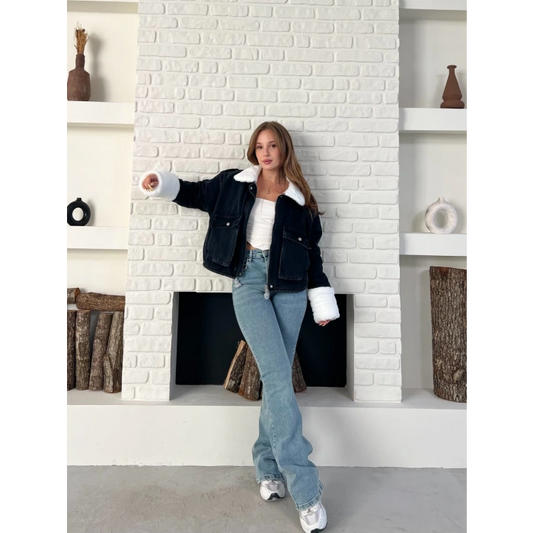 3 AL 2 ÖDECep Detaylı Peluş Denim Ceket Siyah
