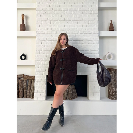 3 AL 2 ÖDEDüğme Detay Teddy Oversize Ceket Kahverengi