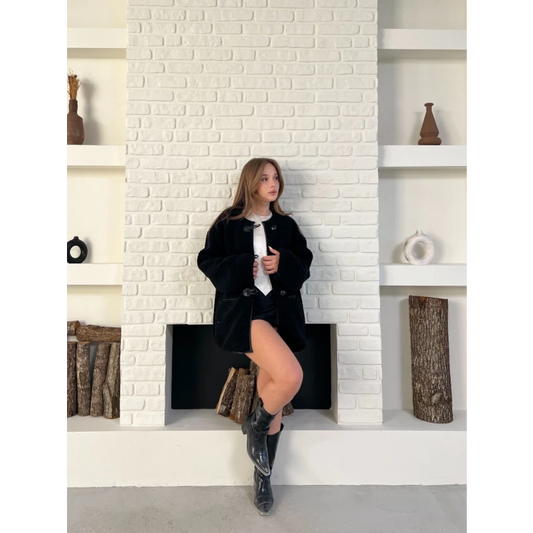 3 AL 2 ÖDEDüğme Detay Teddy Oversize Ceket Siyah