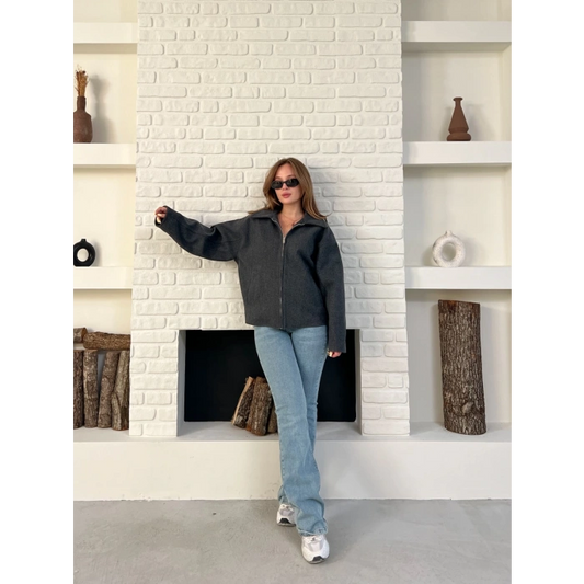 3 AL 2 ÖDEFermuarlı Kaşe Kısa Ceket Antrasit