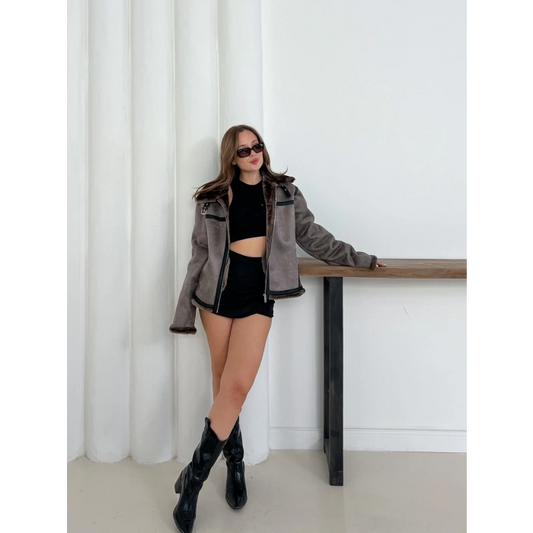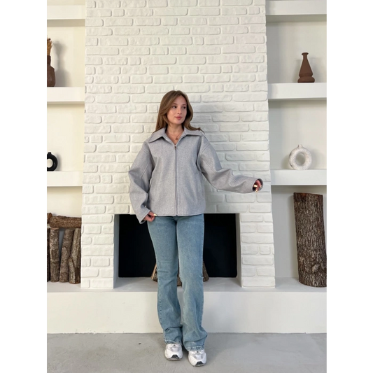 3 AL 2 ÖDEFermuarlı Kaşe Kısa Ceket Gri