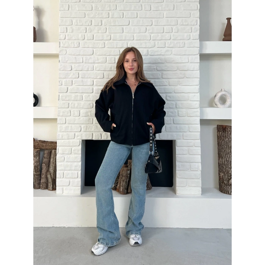 3 AL 2 ÖDEFermuarlı Kaşe Kısa Ceket Siyah