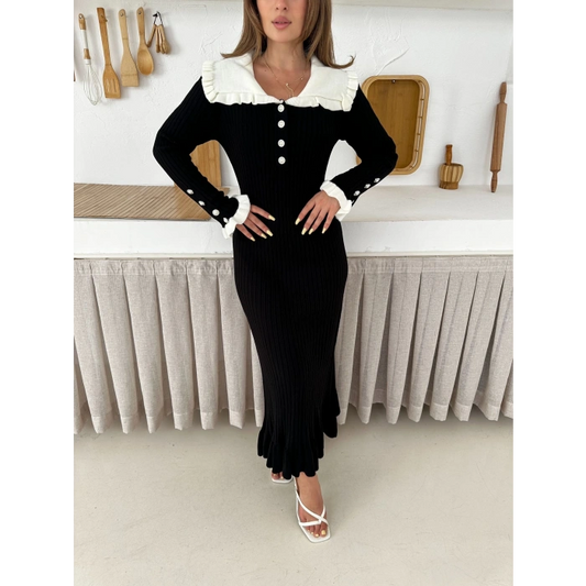 Toka Detaylı Yırtmaçlı Sandy Elbise Siyah