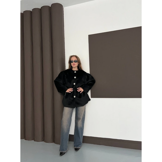 Kürk Manşetli Bağlamalı Kısa Kaban