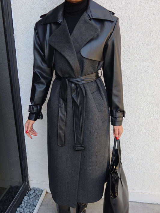 Antrasit Yün Karışımlı Sleeve Pocket Kaban