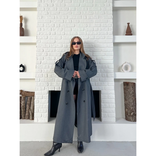 3 AL 2 ÖDEÇizgi Desen Uzun Kaşe Kaban Antrasit