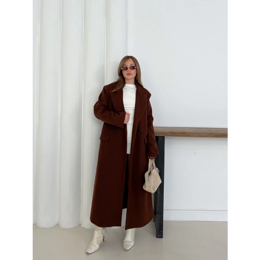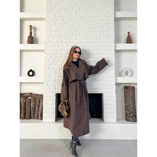 3 AL 2 ÖDEÇizgi Desen Uzun Kaşe Kaban Kahverengi