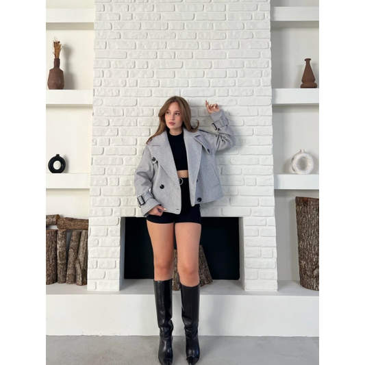 3 AL 2 ÖDEKısa Street Luxe Kaşe Kaban Gri