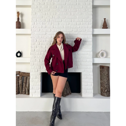 3 AL 2 ÖDEKemer Detaylı Kısa Kaşe Kaban Bordo