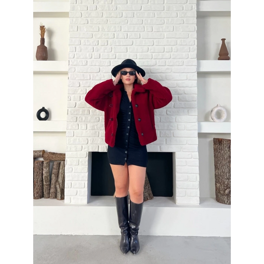 3 AL 2 ÖDEKısa Street Luxe Kaşe Kaban Bordo