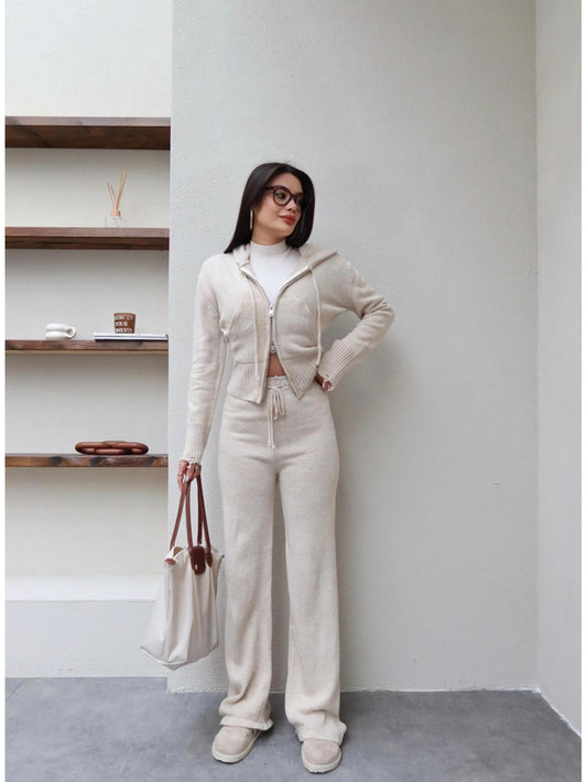 3 AL 2 ÖDEÇift Fermuarlı Triko Takım Taş Rengi