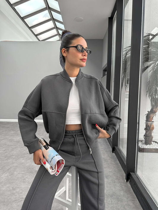Çimalı Fermuar Detay Şardonlu Eşofman Takım Antrasit