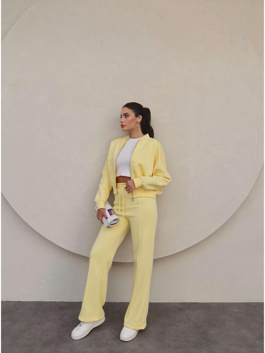 Çimalı Fermuar Detay Şardonlu Eşofman Takım Sarı