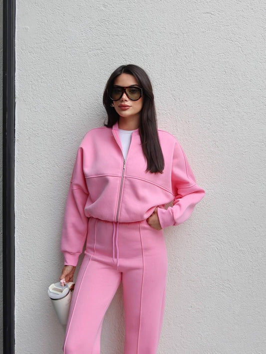 Çimalı Fermuar Detay Şardonlu Eşofman Takım Pembe