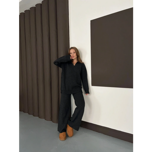 3 AL 2 ÖDEPolo Yaka Triko Pantolonlu Takım Antrasit