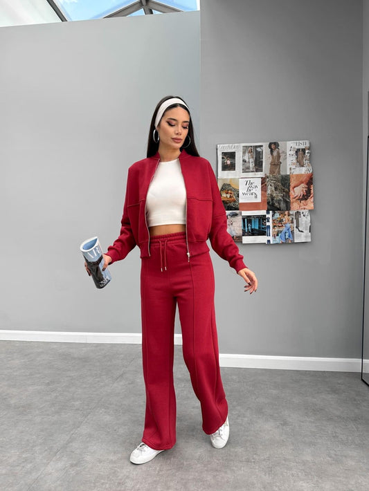 Çimalı Fermuar Detay Şardonlu Eşofman Takım Bordo