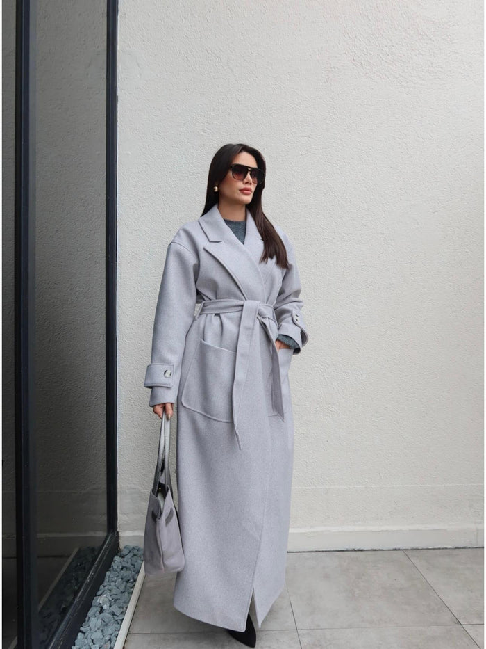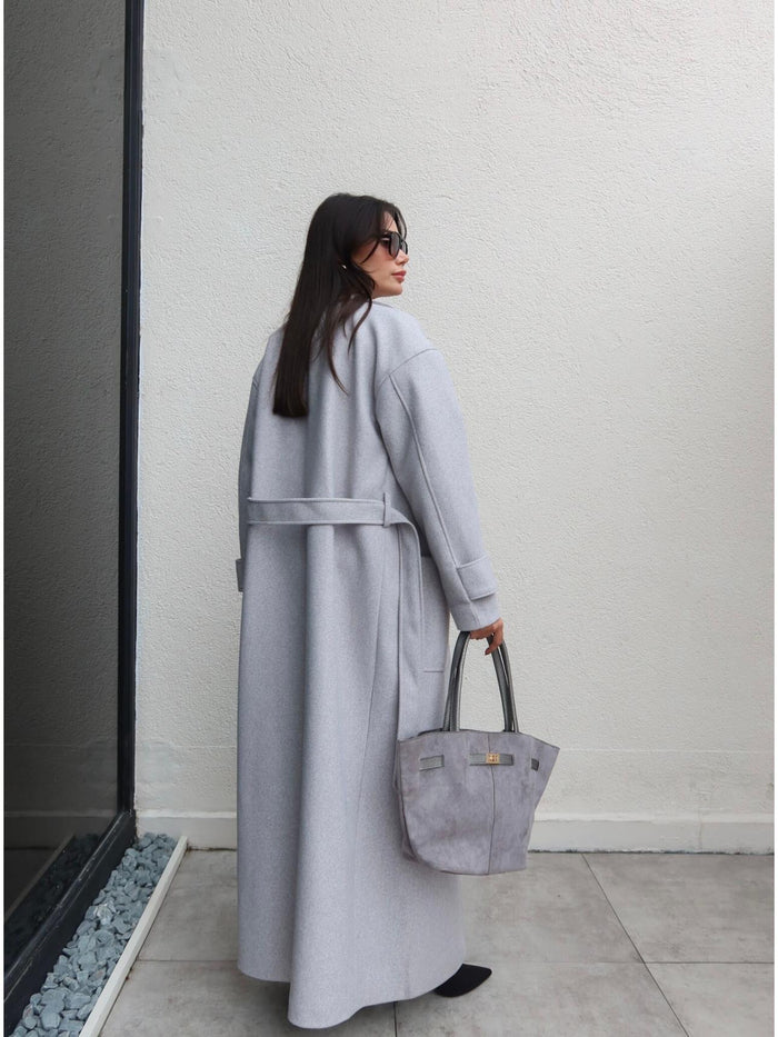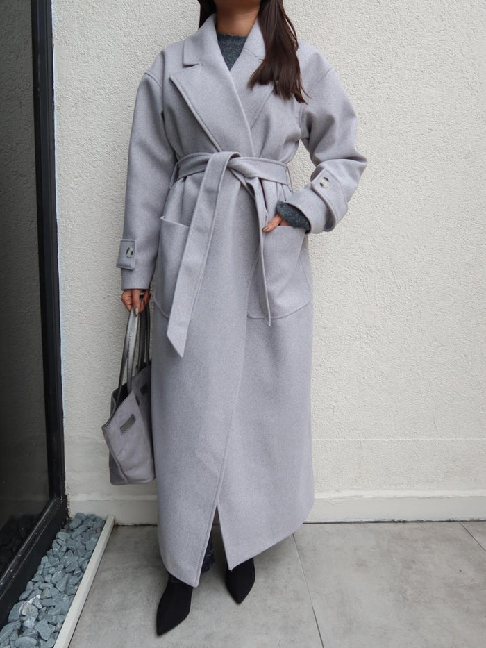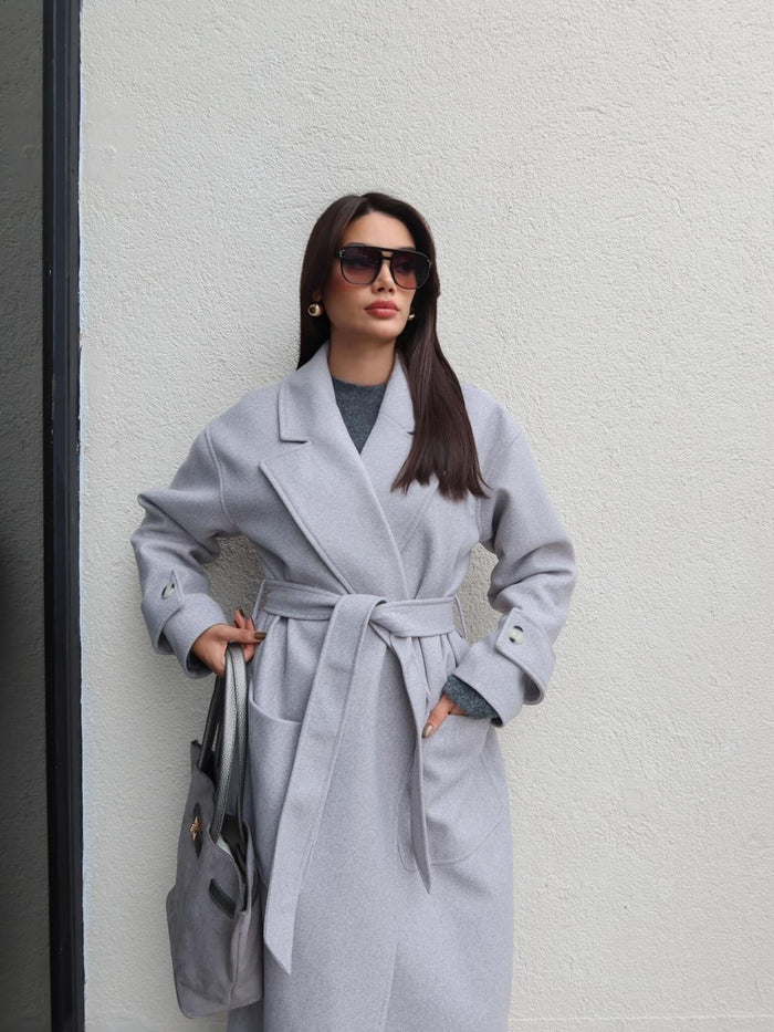 Açık Cep Apolet Detay Kuşaklı Kaban Gri