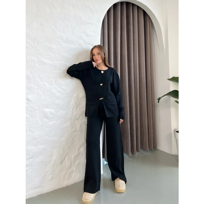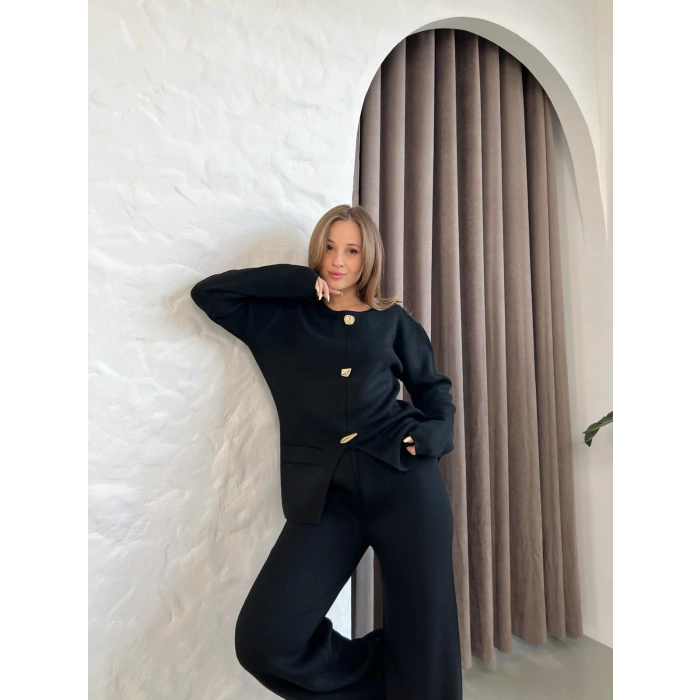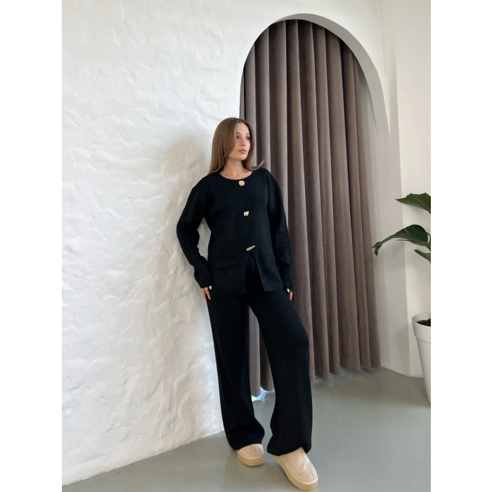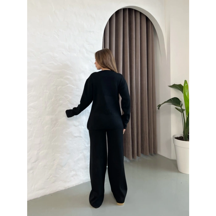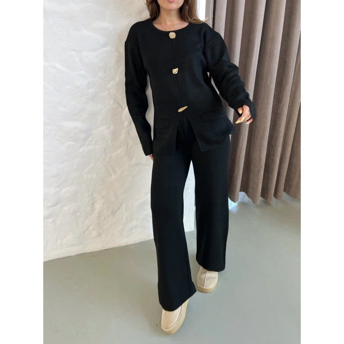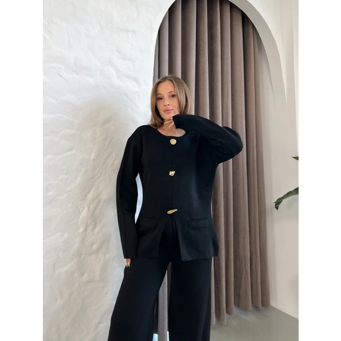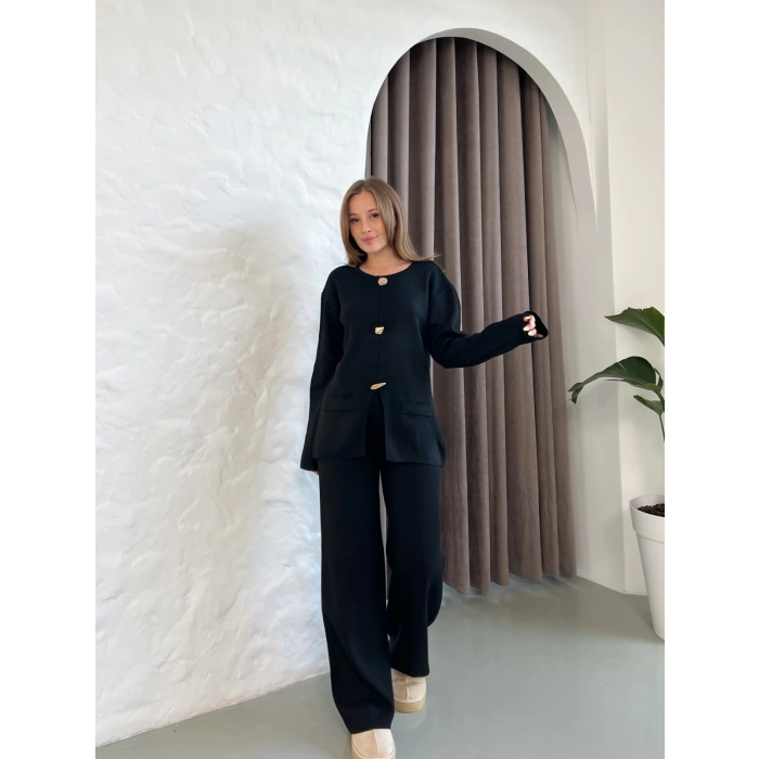 Aksesuar Detaylı Triko Takım Siyah