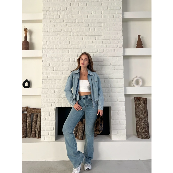 Bel Lastik Detay Denim Vibe Ceket Mavi