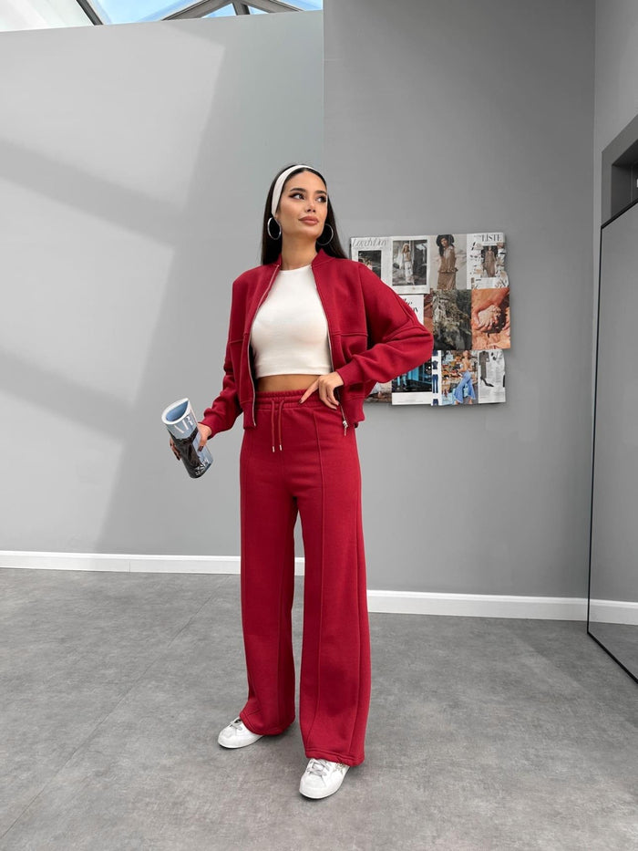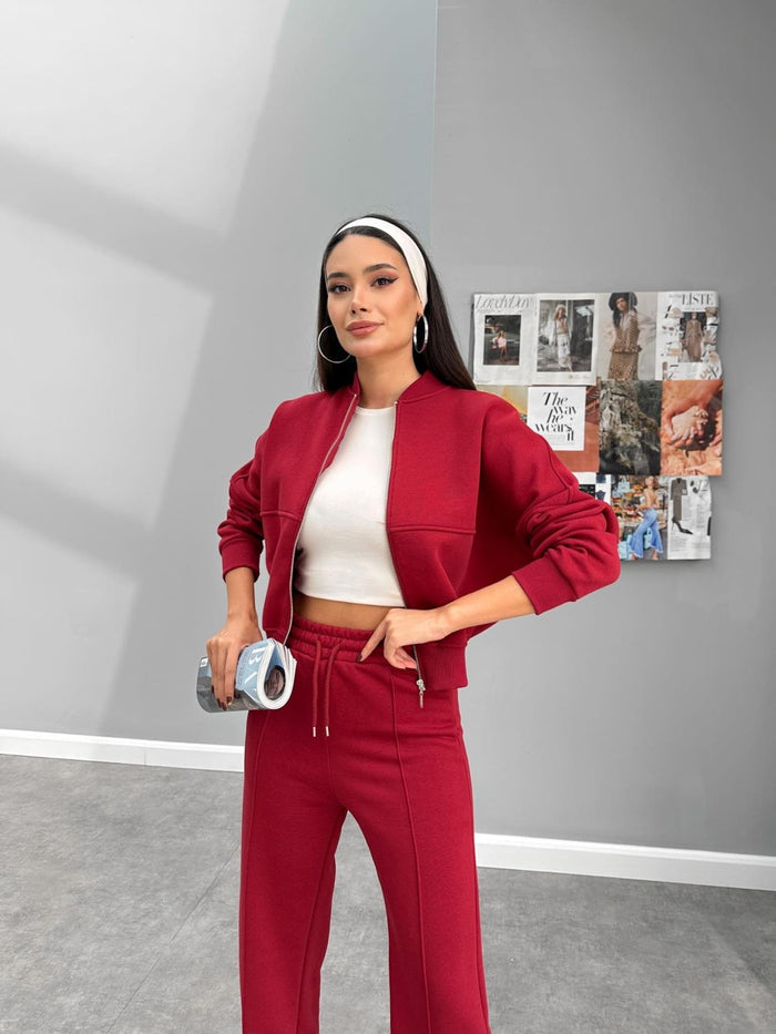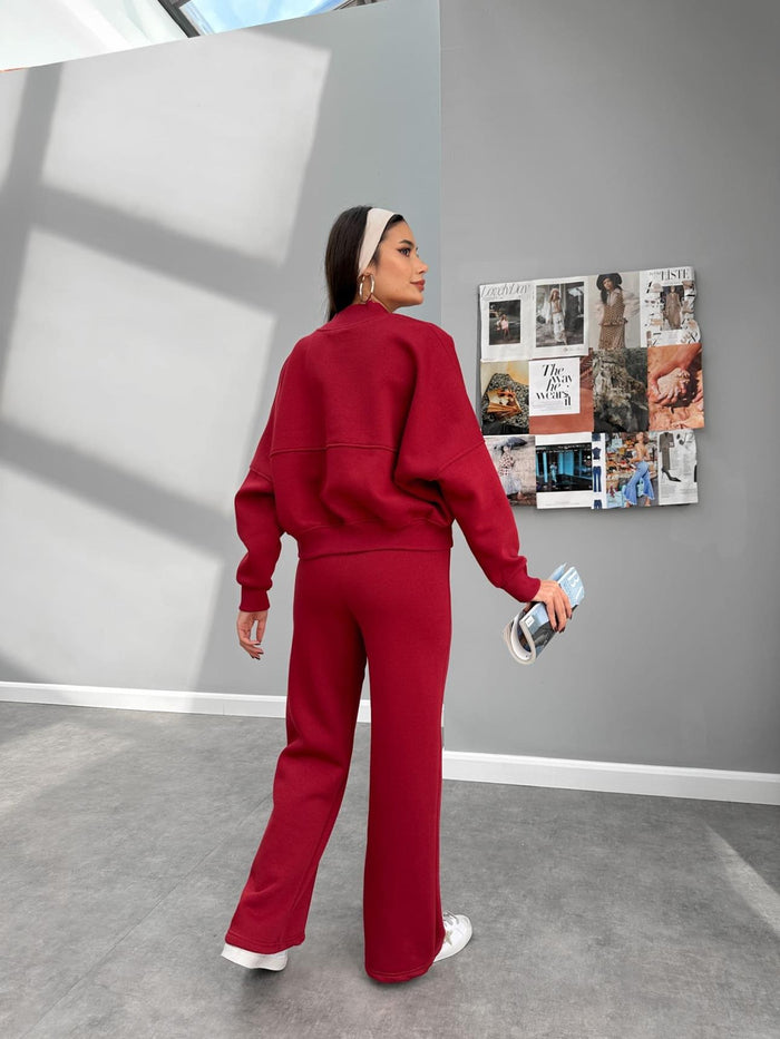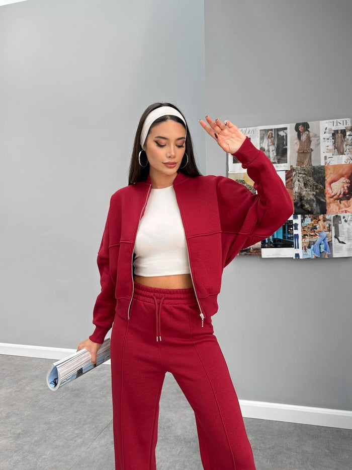 Çimalı Fermuar Detay Şardonlu Eşofman Takım Açık Bordo