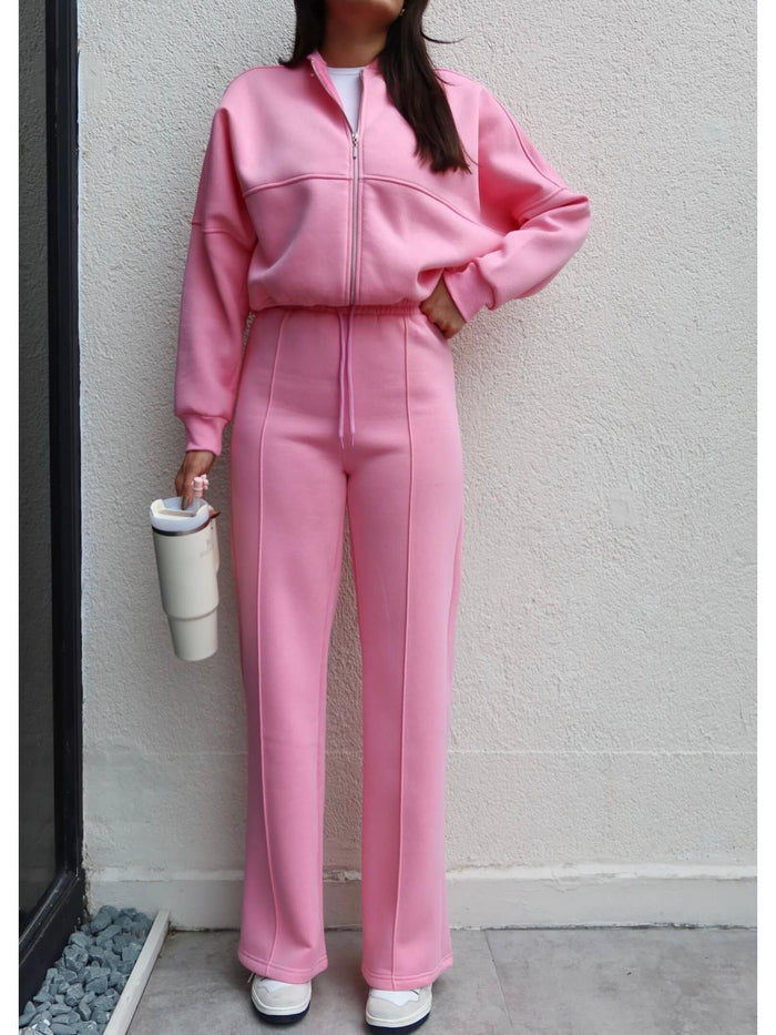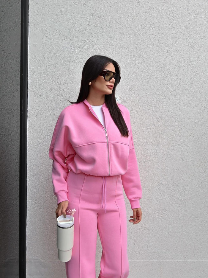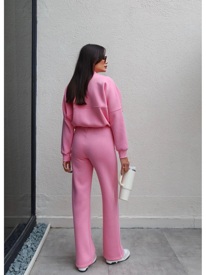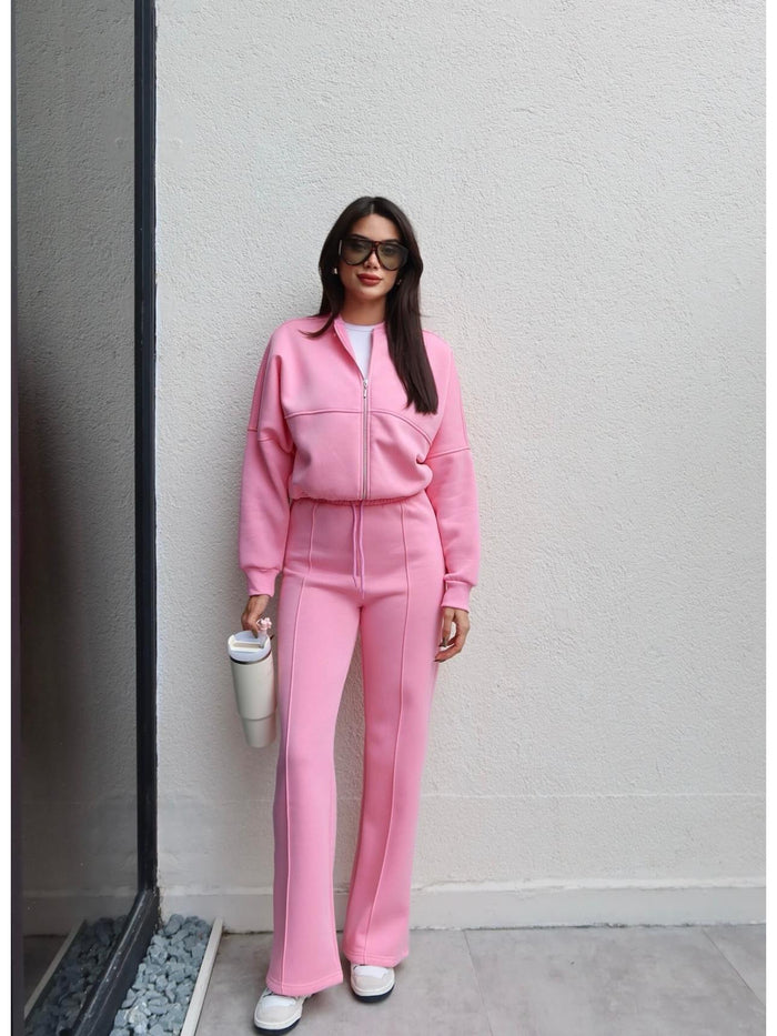 Çimalı Fermuar Detay Şardonlu Eşofman Takım Pembe