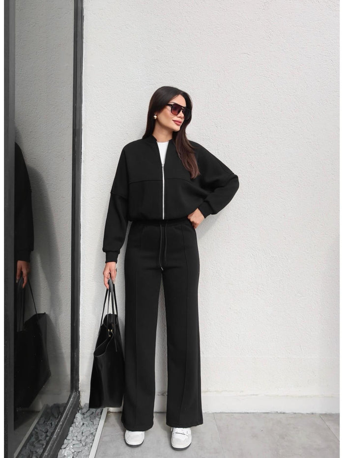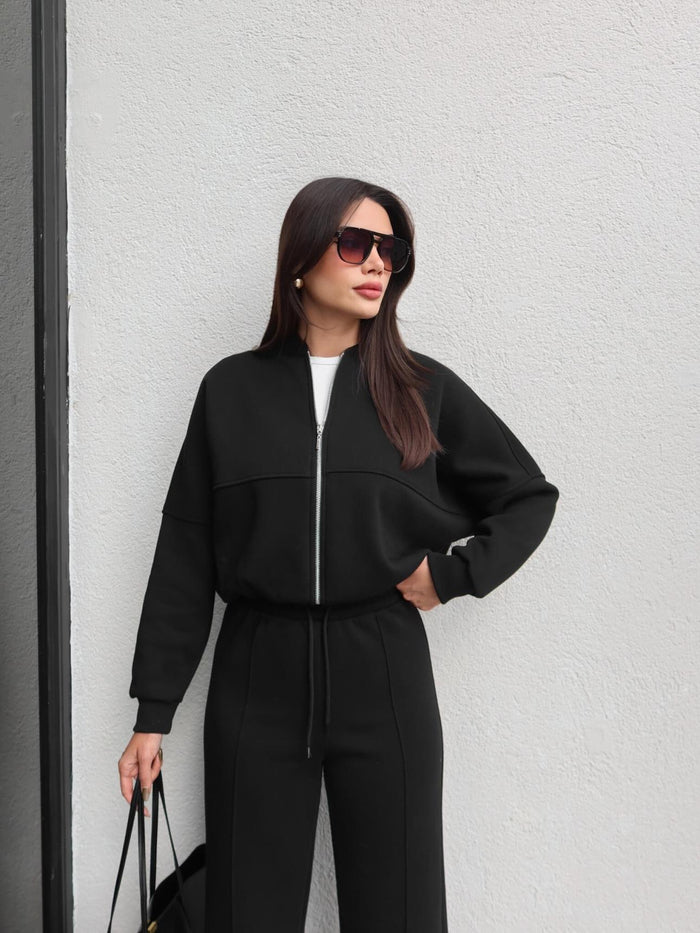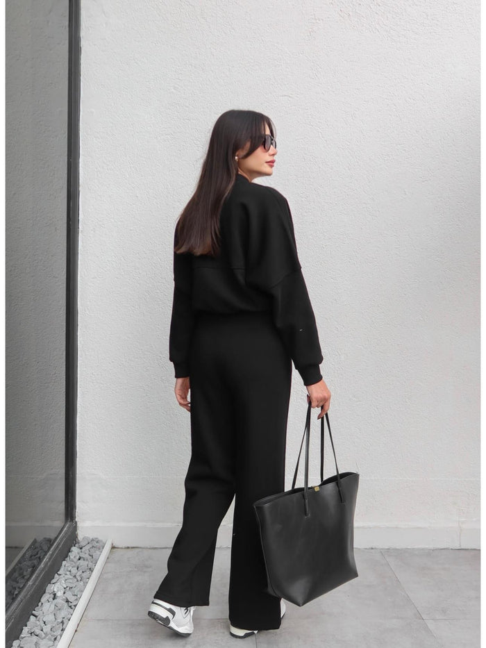 Çimalı Fermuar Detay Şardonlu Eşofman Takım Siyah