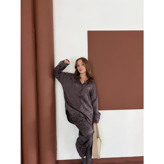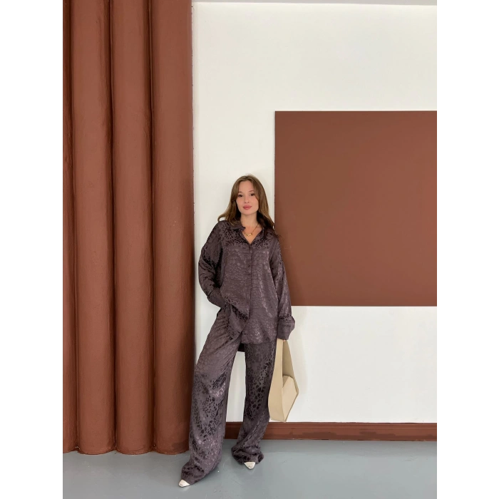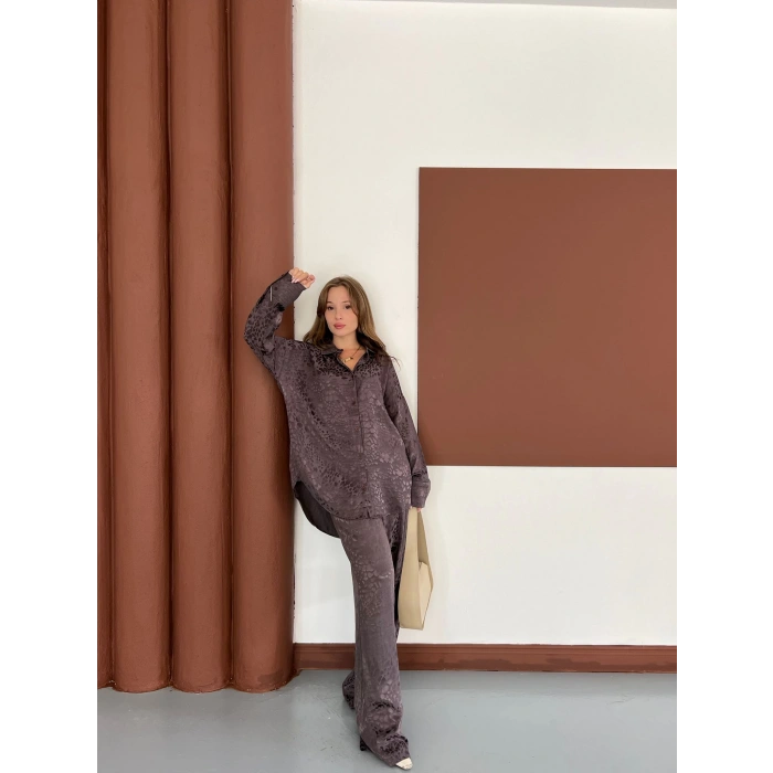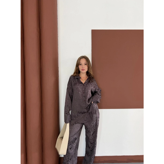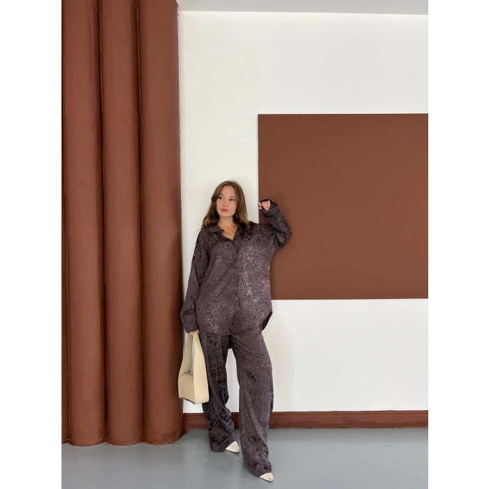 Desenli Gömlek-Pantolon Takım Kahverengi