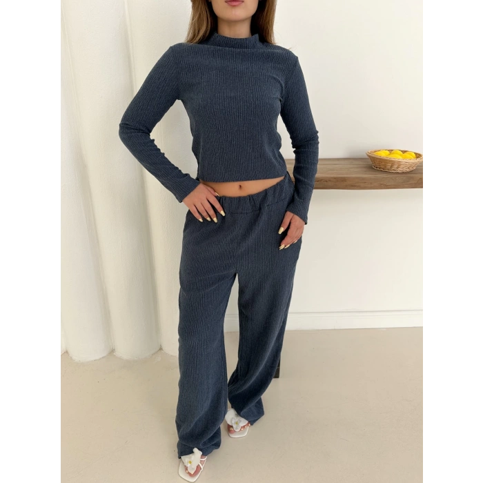 Dik Yaka Pantolonlu Takım Lacivert