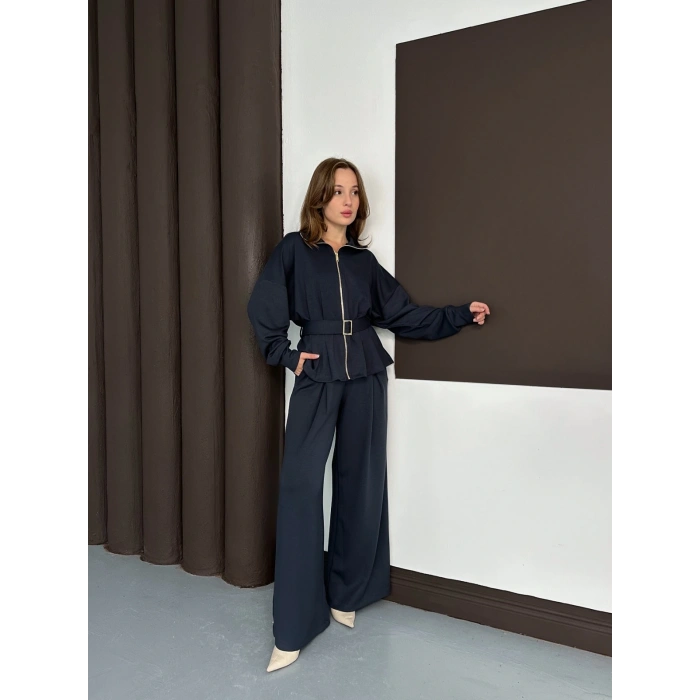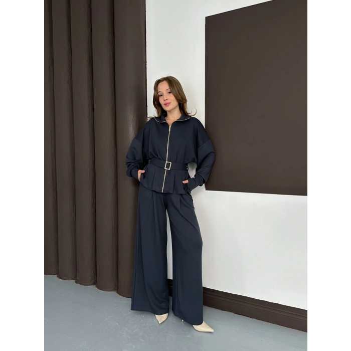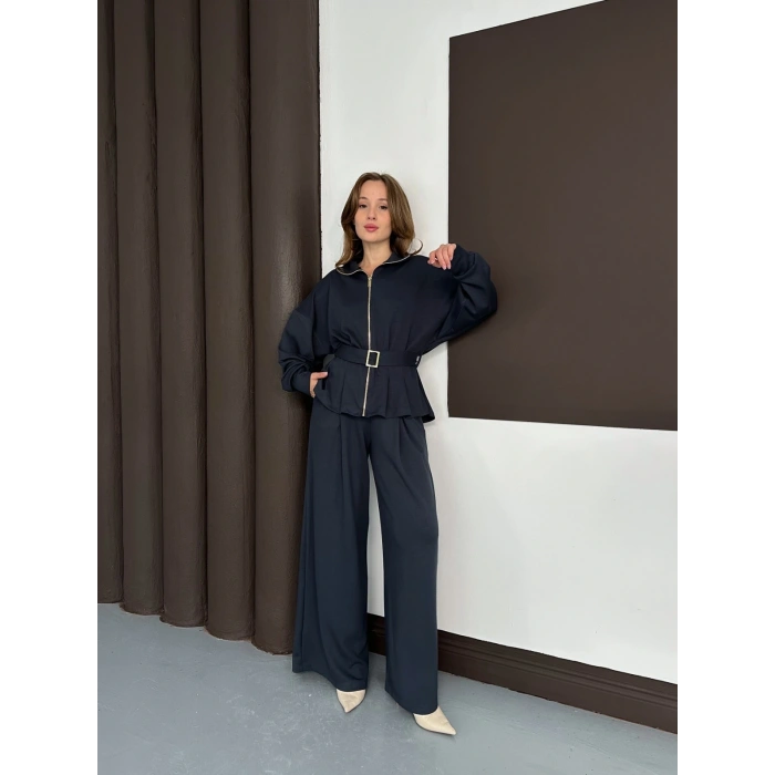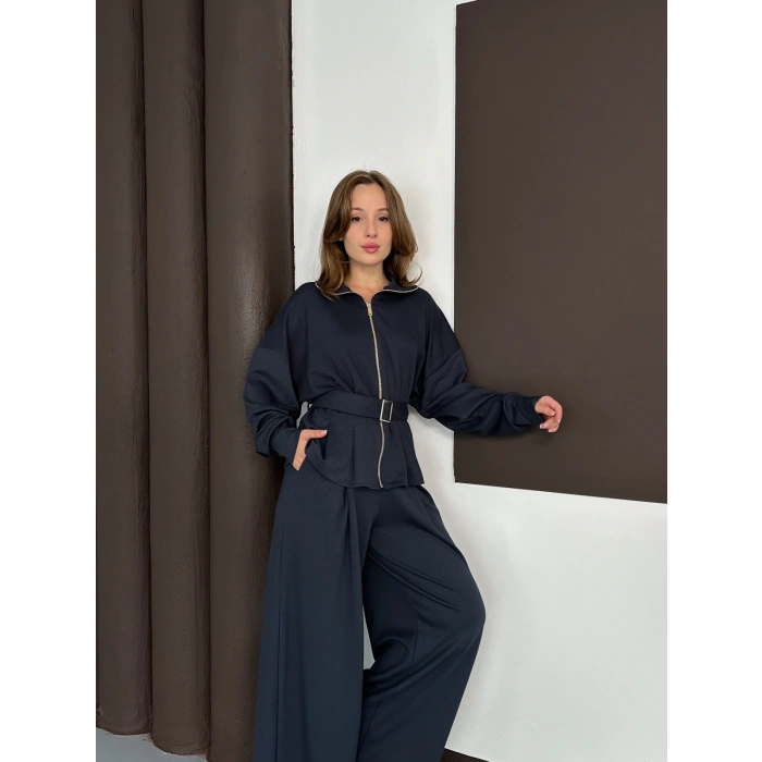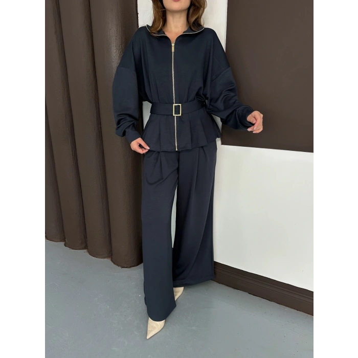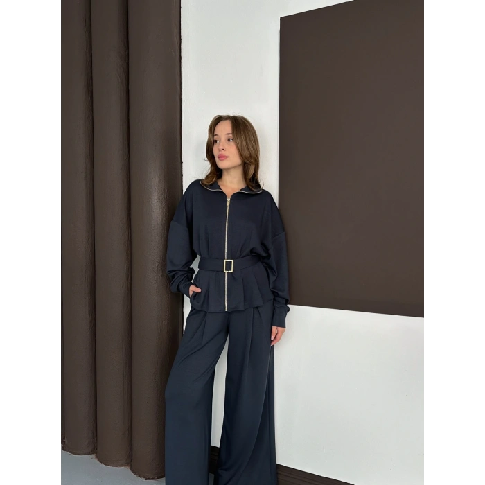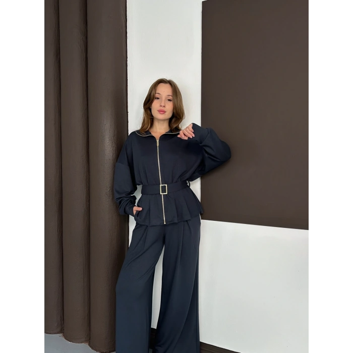 Fermuarlı Kemer Detaylı İkili Takım Antrasit